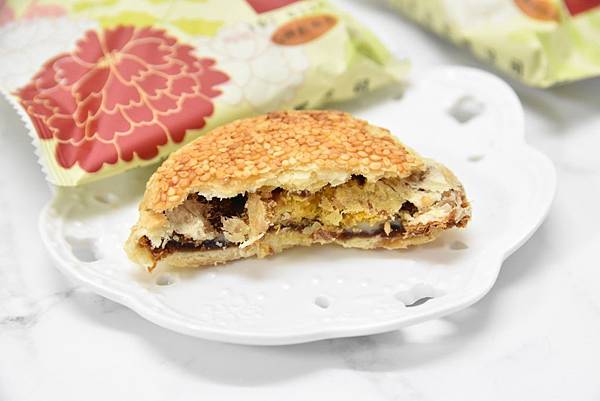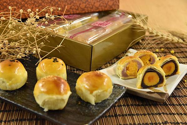 一層層包覆著外皮手工製作的蛋黃酥,蛋黃是精選鹹鴨蛋、經由長時間熬煮的甜內餡,經由高溫烤培後,餡料甜鹹甜鹹的滋味堆疊出味蕾上的美好滋味,再加上綿密的口感,台北伴手禮名店的稱號絕不是浪得虛名!